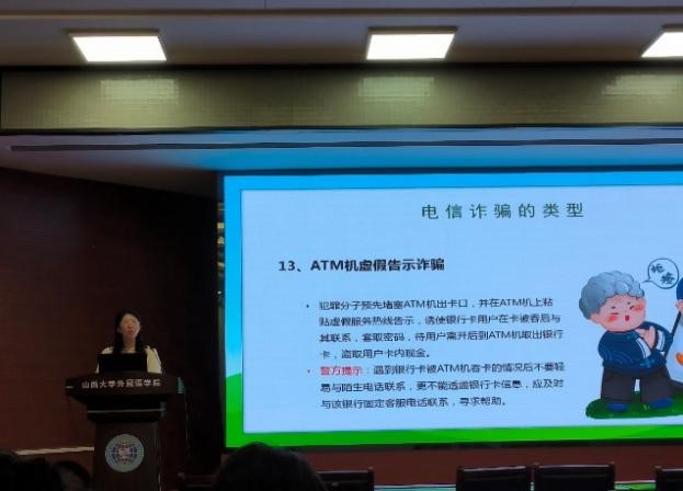 接着,霍老师将课程的重点放在了反电信诈骗上,并向员工们详细阐述了电信诈骗的定义、趋势及其常见类型。通过真实典型的案例和深入细致的讲解,教育同学们如何识别各种诈骗手段,以及在遇到可疑情况时应如何正确应对。霍老师提醒大家要时刻保持警惕,不轻信来历不明的信息,同时也要提醒家人和朋友注意防范,避免上当受骗。