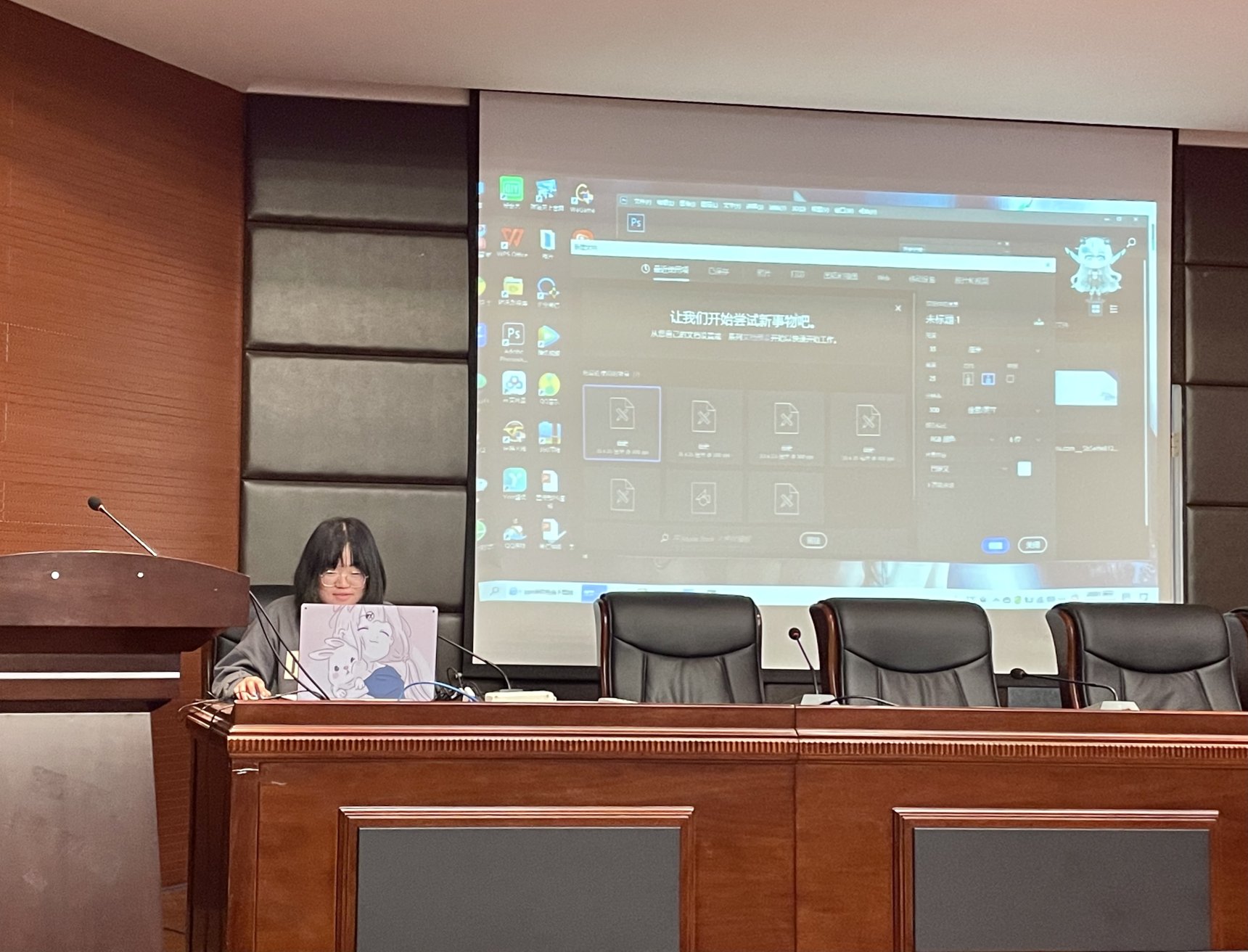 随后发言的是宣传部。宣传部平时主要负责对sunbet申搏举办的各种活动进行宣传动员,制作宣传海报等。在宣传部杨亚文同学的分享中,我们学到了如何使用PS软件制作海报,随后宣传部部长张琼予和青年媒体中心总编贾梦芝介绍了一些制作海报的具体操作以及滤镜的使用,对以后进行一些基础的PS工作有很大帮助。
