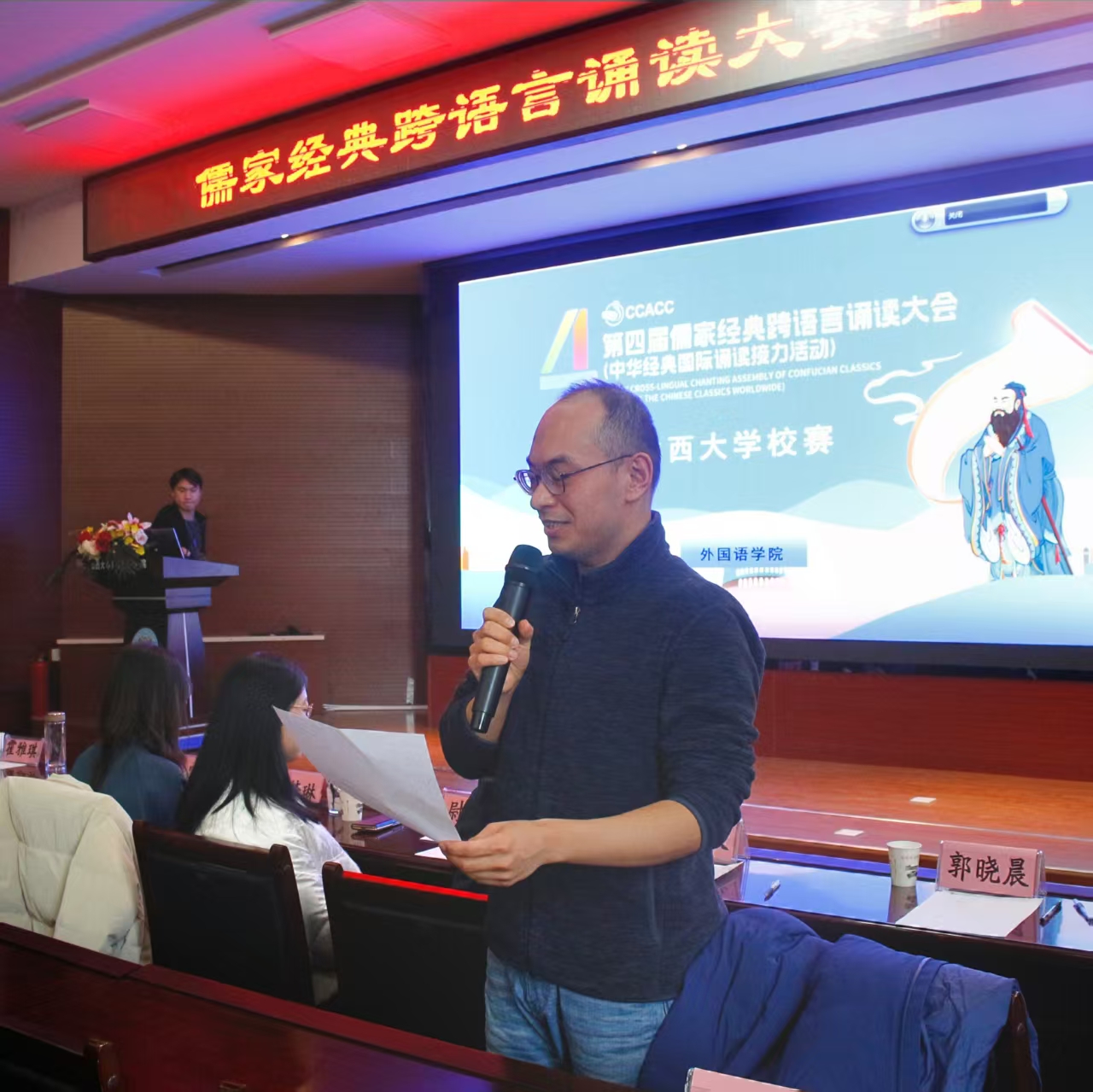 跨越语言,领略文化之美;共话大同,传递东方智慧。为进一步增强中华文化的吸引力,更好地向世界讲述中国故事,2025年3月7日,sunbet申搏第四届儒家经典跨语言诵读大会在sunbet申搏第一教学楼301报告厅成功举办。