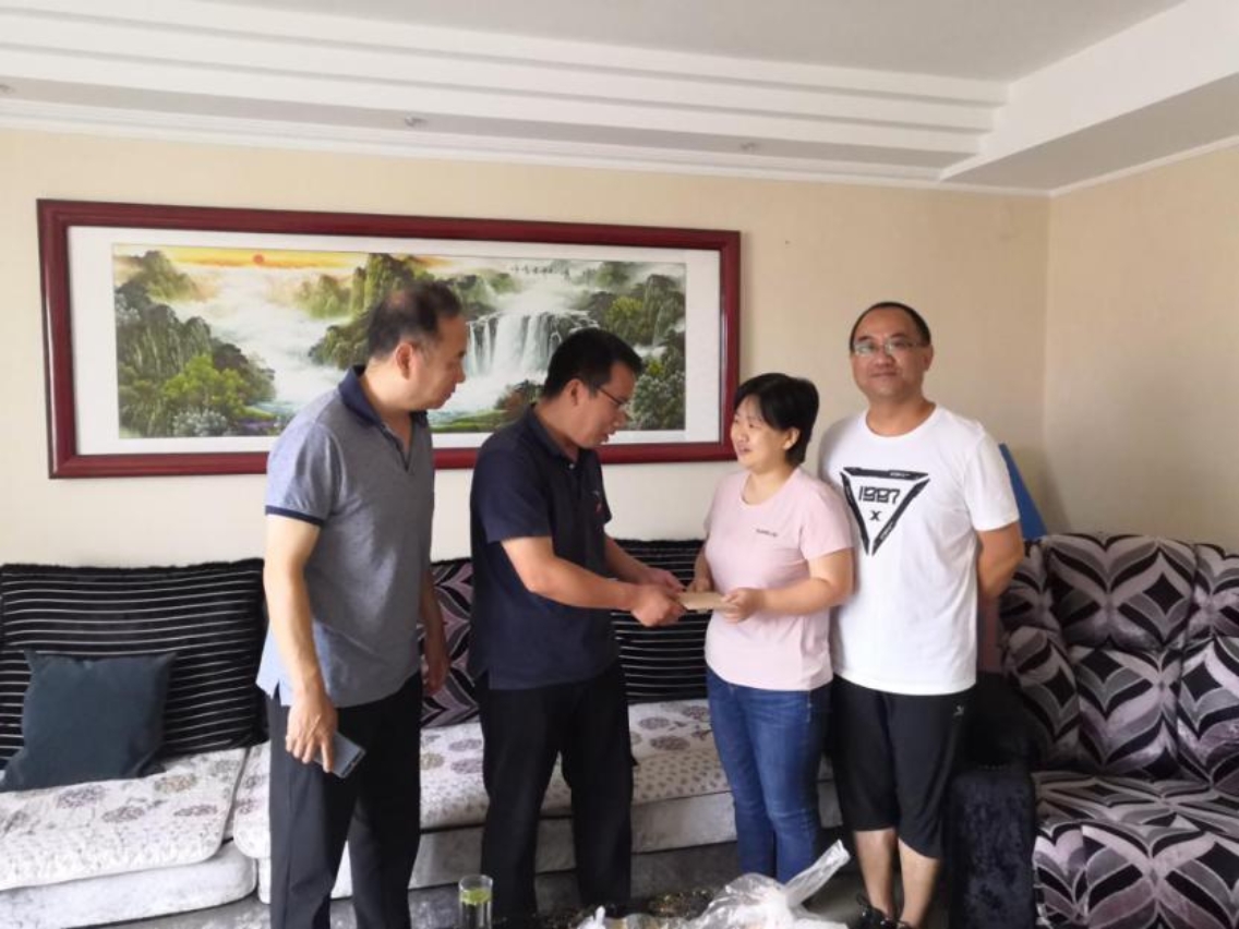 2020年7月4日,外国语公司党委书记武俊杰、经理张耀平和副书记郁新春代表学院看望了公司教职工任建英老师和王璐老师的家属,他们都曾为抗击新冠疫情奔赴武汉抗疫一线。公司领导送去了sunbet申搏组织部发放的抗疫家属慰问金和学院全体教职工的关怀与温暖。
