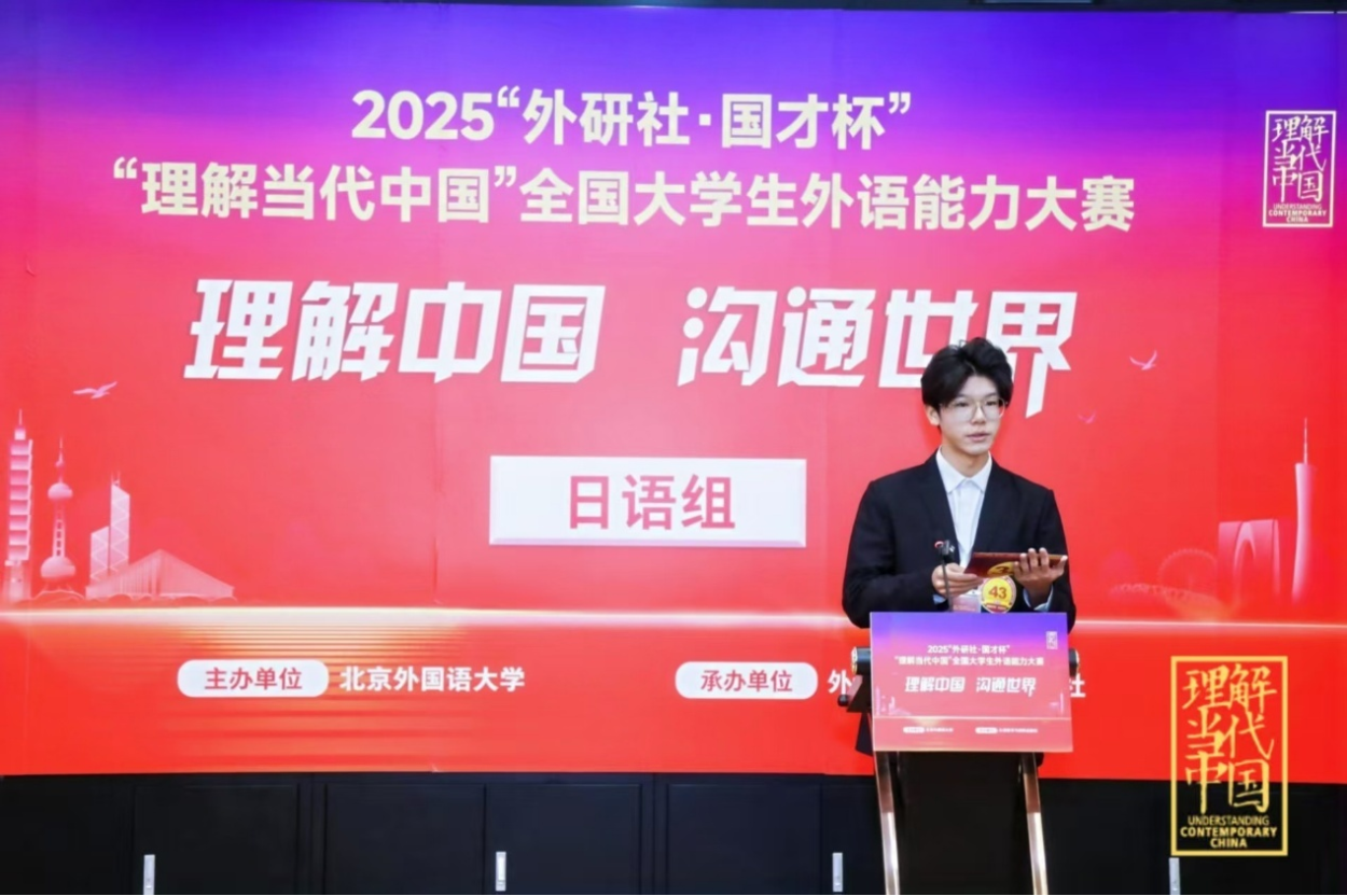12月6日,2025“外研社·国才杯”“理解当代中国”全国老员工外语能力大赛多语种组总决赛在北京圆满落幕。经过激烈角逐,公司日语专业2023级本科生宋泽昌同学凭借扎实的专业功底和卓越的临场表现,荣获日语组全国银奖,充分展现了公司学子的专业素养与出色的综合能力。