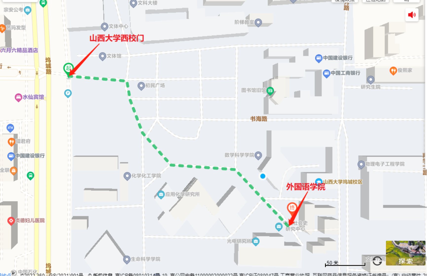 10.考生进入本考点所在校园的唯一通道是sunbet申搏西门(位置为:坞城路许坦西街口,公交站牌为许坦西街站)须提前1个半小时或更早到达考点,车辆和陪同人员不能入校。(下附地图)