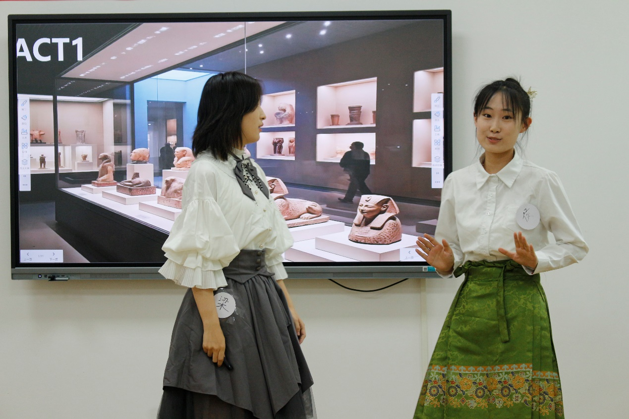 校赛以英语为参赛语种,包括初赛和决赛两个环节,分别为跨文化交际案例开发与展析和名言名句解读。在跨文化交际案例开发与展析环节,15个参赛团队各显神通,精心选取教育、医疗、旅游、社交等丰富多样的跨文化场景,巧妙运用服装道具,营造身临其境感,全方位展现跨文化交际中的精彩瞬间与潜在挑战;进而,通过深入分析案例背后的文化根源、价值观差异和沟通障碍,参赛团队不仅展示了扎实的理论功底,更展现出独到的解决思路和创新思维,为化解真实场景中的跨文化冲突提供了有益借鉴。经过初赛的激烈角逐,评分最高的王景瑶、武千越、张珈瑜团队,李嘉璐、郭琰、郭鑫炜团队,和张阳希、孙可馨、洪家善团队成功突围,名列前三,晋级决赛。