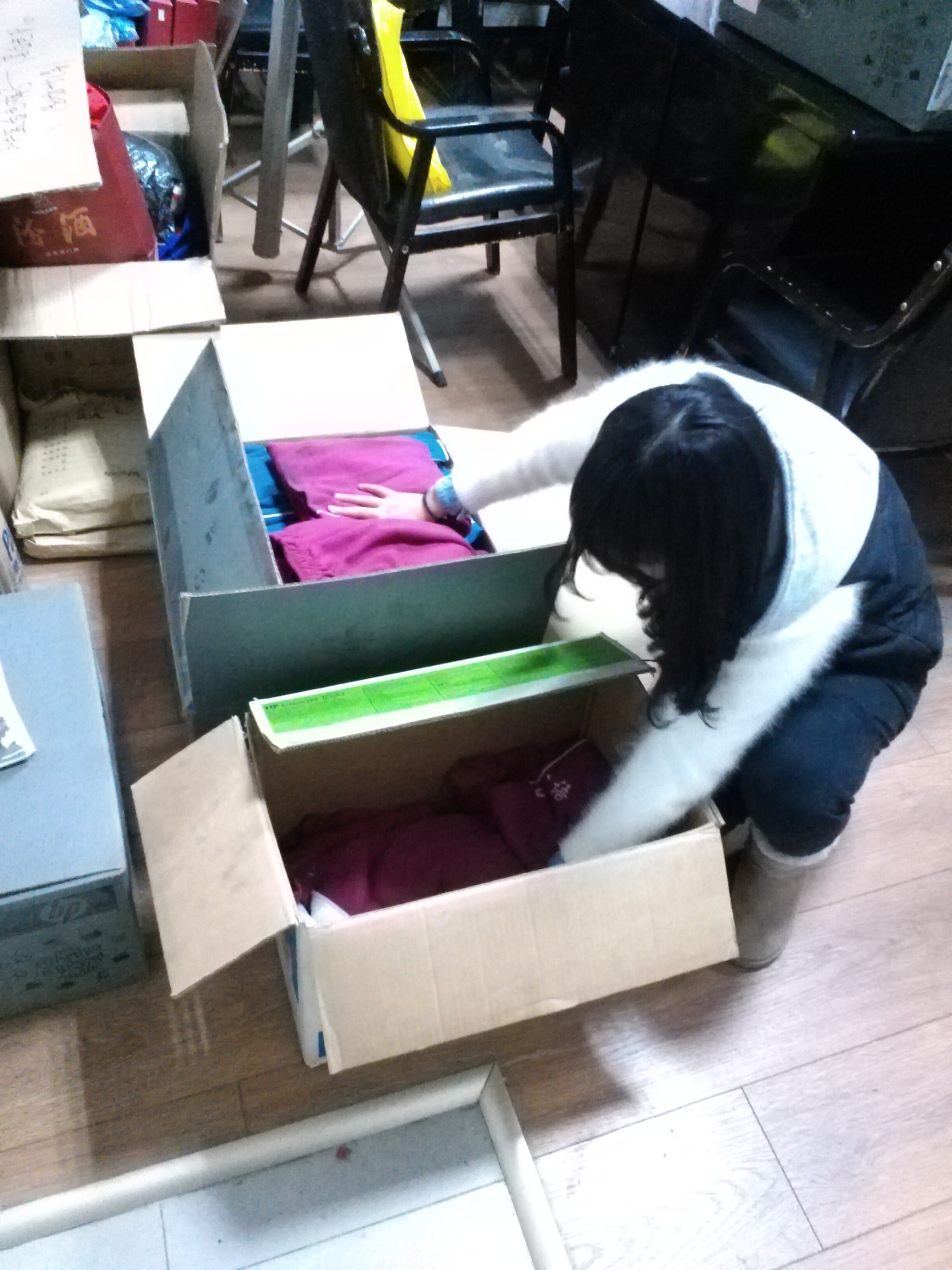捐赠衣物是公司几年前的旧运动服,放在学院仓库搁置了很长时间。生活部的同学们趁课余时间认真地收拾了一套套服装,把衣服都叠好整整齐齐放在四个大箱子里。他们收拾得非常仔细,仿佛在完成一项光荣而神圣的任务。是啊,这的确是一件值得好好做的事,因为它的意义绝不仅仅是给孩子们送去一件衣服那么简单,它更是温暖了山区孩子们的心灵,也温暖了这个寒冷的冬季。由于这些衣物被长时间搁置,部分衣物沾染了不少灰尘,为了给孩子们送去干净暖和的衣服,需要把它们搬送到洗衣店清洗一遍。从学院仓库到令德地下洗衣店,是有一段距离的。虽然,屋外气温很低,每箱衣物都挺重的,但是大家伙干得都很开心,已然陶醉于这个平安夜里温暖的爱心活动当中。在一路平安夜温暖灯光的照耀下,在一曲曲温馨的圣诞歌谣的陪伴下,四大箱衣服被抬到了令德洗衣店。店主听说这些准备洗的衣服是送给云南贫困地区的孩子们过冬之后,他们也露出了欣喜的笑容。那份笑容,也必将成为圣诞夜里一道独特的风景线,也是圣诞老人带来的一份礼物吧。