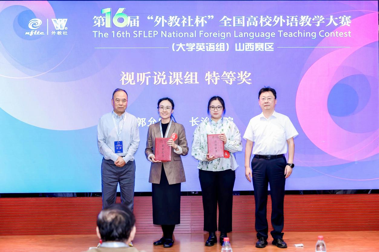 最后,出席典礼的嘉宾和评委专家依次为本次大赛获奖选手颁奖。至此,第十六届“外教社杯”全国高校外语教学大赛(山西赛区)圆满落幕。