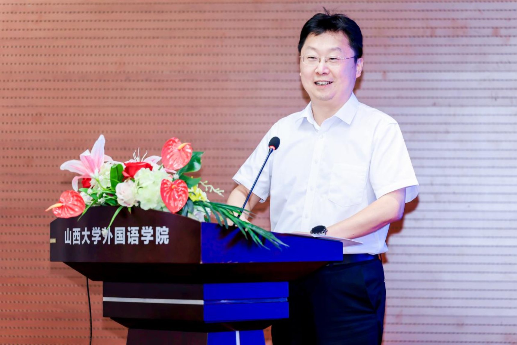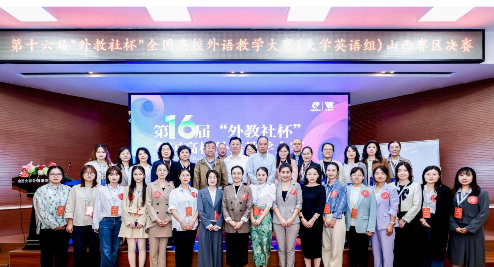 赛后,大赛组委会成员、决赛评委专家和全体选手出席了大赛颁奖典礼。山西省高等院校外语教学研究会会长张耀平教授对大赛的成功举办表示祝贺。张会长表示,各参赛选手以饱满的热情投入赛事,凭借扎实的教学功底与精湛的语言能力,在我省外语教学竞技的最高舞台上充分展现了我省外语教学改革与教师专业发展的丰硕成果,生动诠释了教学大赛“以赛促教、切磋交流、追求卓越”的核心价值追求。