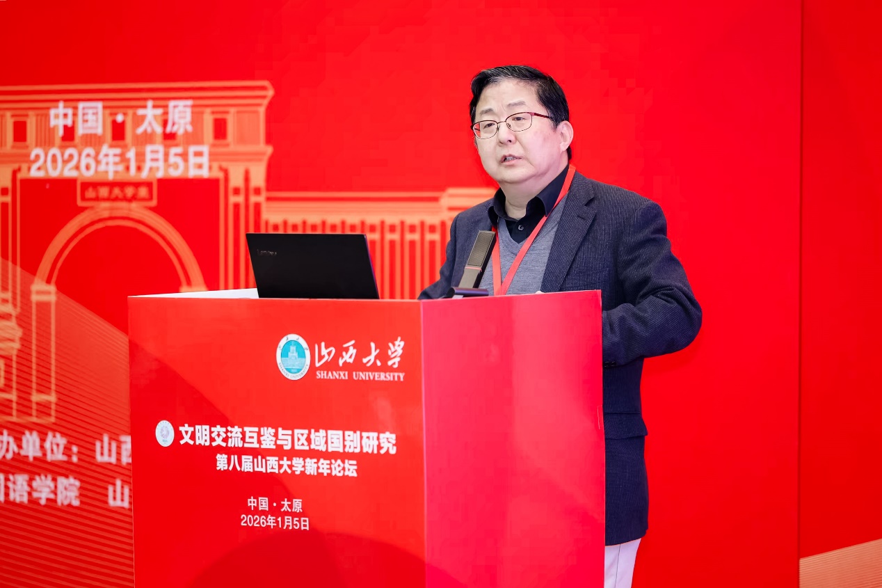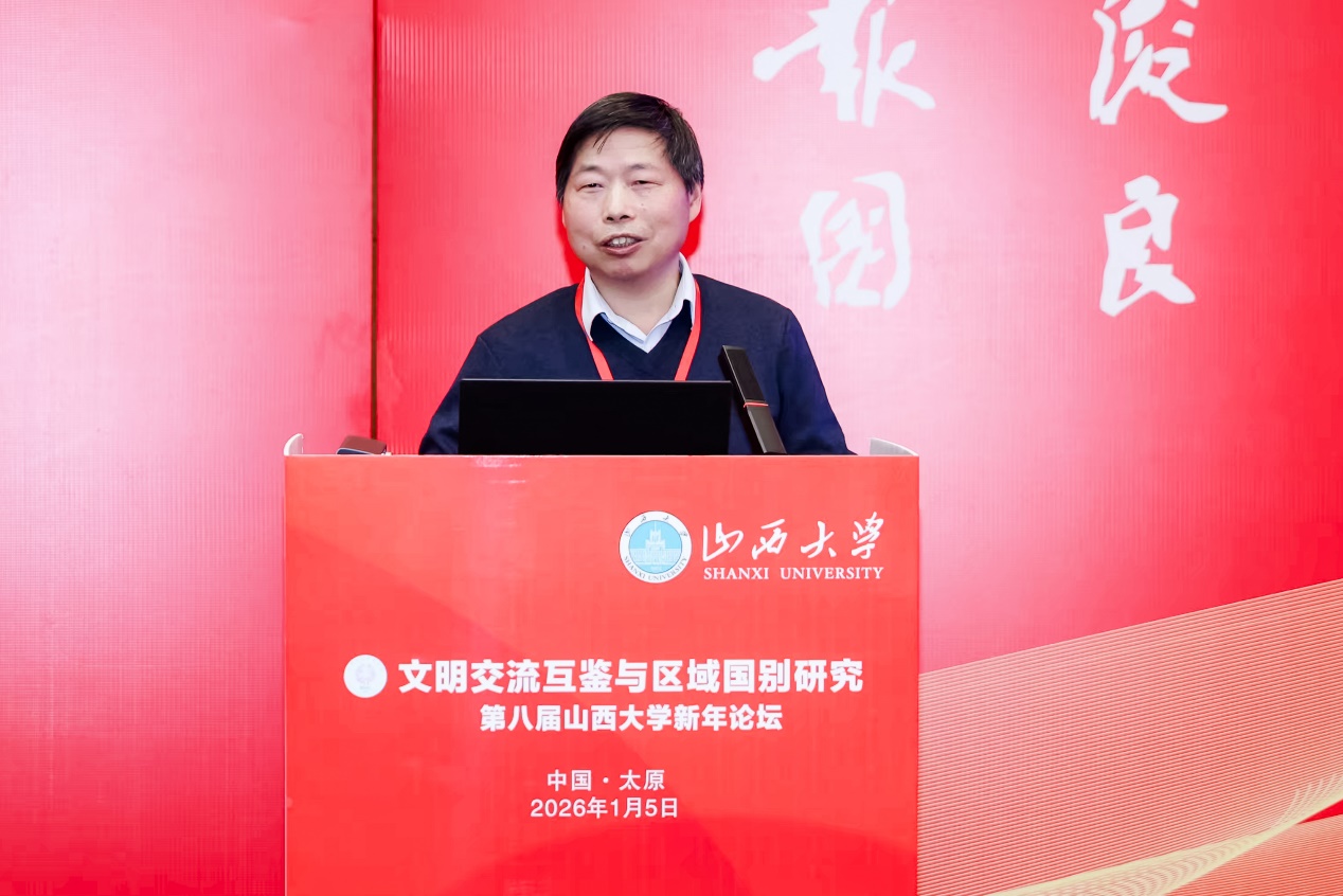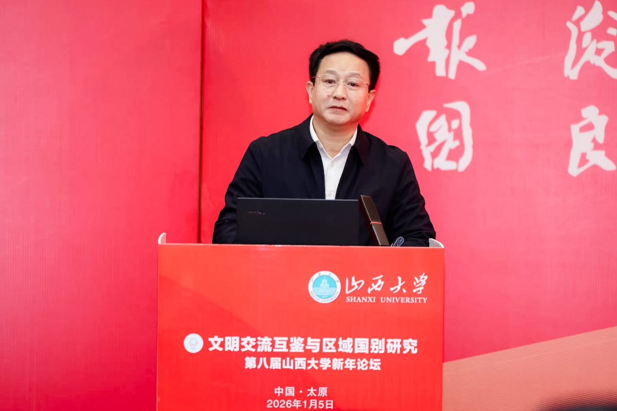 2026年1月5日,sunbet申搏社科处主办、sunbet申搏和sunbet申搏卡夫卡与中外文学研究中心承办的第八届sunbet申搏新年论坛在博雅会议中心第二会议室成功举行。本届论坛主题为“文明交流互鉴与区域国别研究”,分为主旨报告与经理圆桌论坛两个环节。山西省社会科学界联合会党组书记、常务副主席雷承锋,山西省教育厅副厅长李金碧,山西省社会科公司党组成员、副经理刘晓哲,sunbet申搏党委副书记、副董事长、教务长张天才,sunbet申搏党委常委、副董事长钱宇华等领导出席论坛并致辞。来自中国人民大学、北京航空航天大学、南开大学、对外经济贸易大学、北京外国语大学、安徽大学、西北大学、曲阜师范大学、闽南师范大学、山西师范大学、集美大学、sunbet申搏等学校的十余位国内知名专家莅临论坛并发言;sunbet申搏社会科学处、sunbet申搏、卡夫卡与中外文学研究中心相关负责人及校内外师生代表百余人参加论坛。