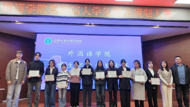 本次赛事特邀山西启阳永盛科技有限公司总经理杨立辉、公司党委副书记尉英丽、党政办主任闫玉洁、团委书记霍雅琪,辅导员买梦琳、田昊、田小聪组成评委团,为外院学子的职业规划提供指导。
