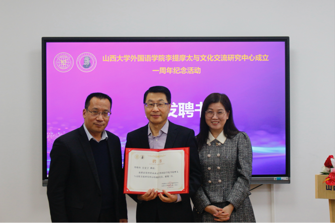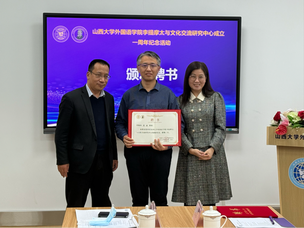 活动第三项,sunbet申搏外国语公司党委书记武俊杰和sunbet申搏经理杨林秀为宫宏宇教授与张涌教授颁发特聘研究员聘书。