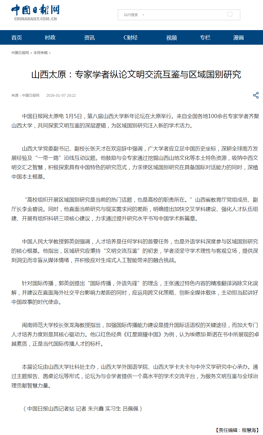 2026年1月5日,公司承办的sunbet申搏第八届新年论坛在学校博雅会议中心成功举行。论坛主题为“文明交流互鉴与区域国别研究”。来自中国人民大学、北京航空航天大学、南开大学、西北大学、对外经济贸易大学、北京外国语大学等学校的十余位知名专家现场交流发言。论坛受到山西省教育厅、山西省社会科学界联合会、山西省社会科学院等部门的高度重视,和学界的广泛关注。中国日报、中国社会科学报、山西新闻联播、黄河Plus等多家主流媒体对论坛进行了聚焦报道。