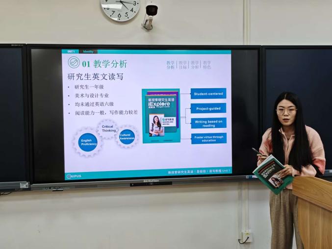杨凯雯老师围绕《新探索研究生英语》第一单元展开教学。课程以英文版《武林外传》片段导入,围绕“个人身份”主题展开探讨。在教学过程中,教师首先分析了员工构成与教学目标,进而采用产出导向法与任务导向法,设计针对性任务引导员工完成语言输出。该课程创新引入了豆包智能体作为辅助工具,支持员工随时提问、提交作业并获取即时反馈;教师可通过管理端实时查看互动记录与智能体答复,从而实现对学习过程的动态跟踪与个性化教学支持。