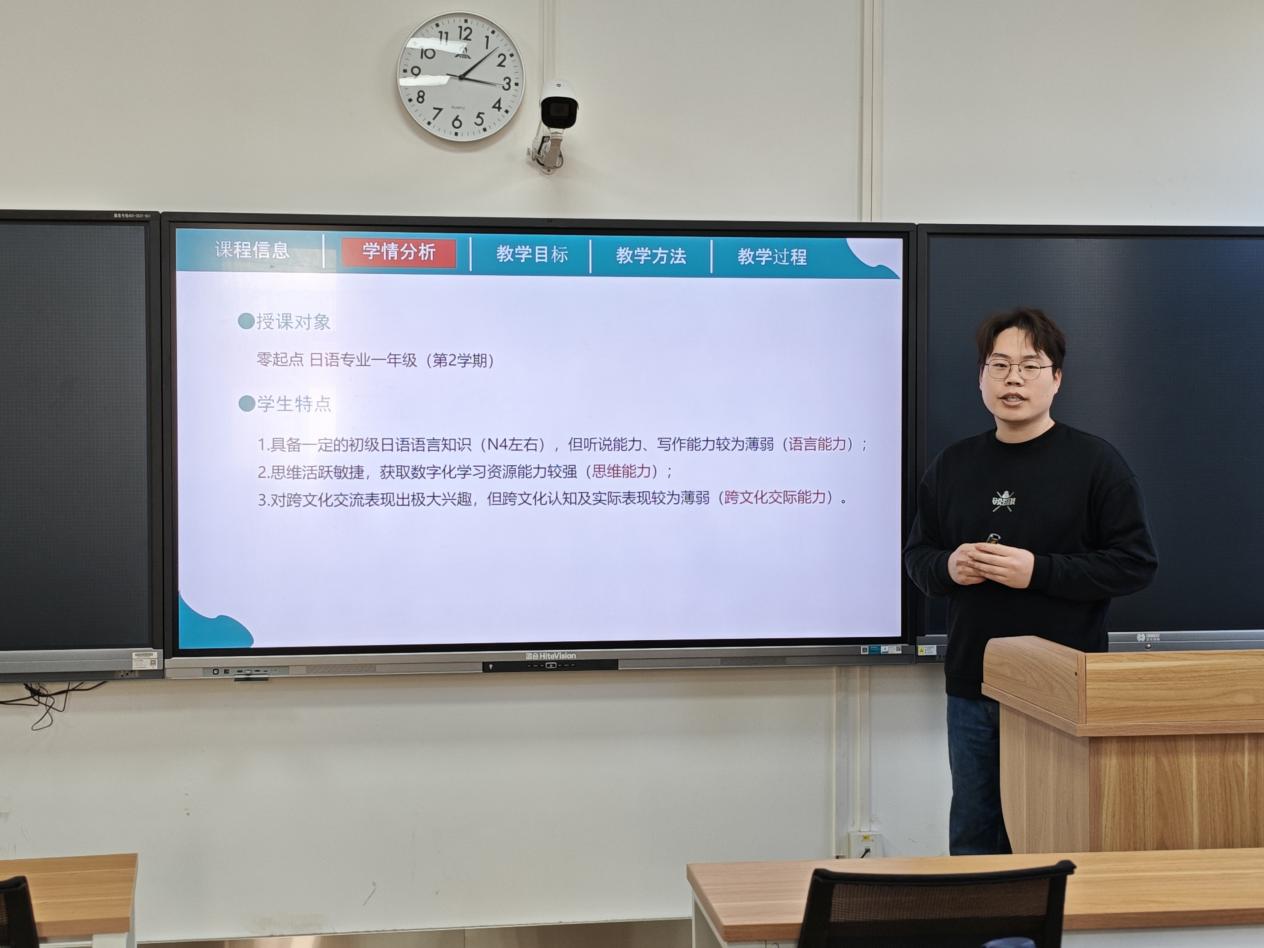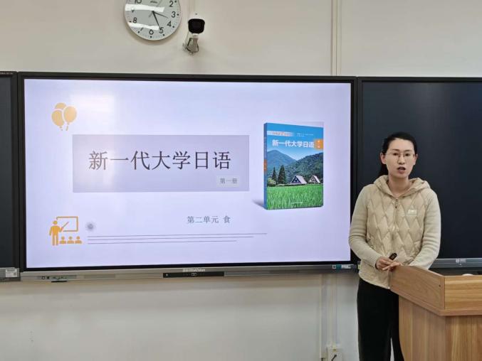 侯丁冉老师在试讲中,围绕新一代大学日语教材第二单元第四课《日本人的饮食生活的变化》,系统梳理了重点词汇与语法知识。她不仅对关键词汇进行辨析,还结合日本社会现代化进程,深入剖析饮食变迁背后的文化内涵与社会动因,引导员工理解语言形式与文化语境的紧密关联,展现了扎实的专业功底与清晰的教学逻辑。