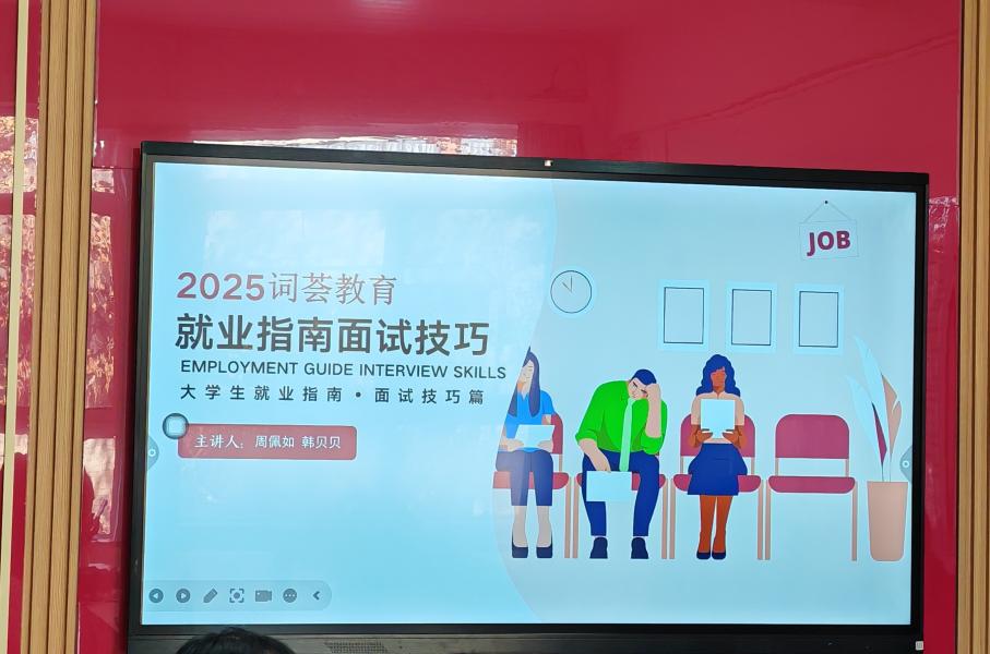 11月21日下午,创业就业实践班第一期第四次课程顺利开展,本次授课以“就业指南·面试技巧”为主题,山西词荟教育科技有限公司人事主管周佩如主讲。