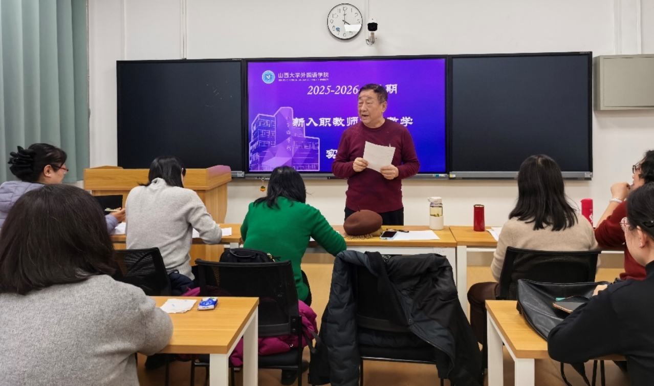 2025年12月26日,大学外语部在第二教学楼116教室成功举办新入职教师教学实践测评。本次教学实践测评旨在考查2025年新入职大同校区青年教师的课堂教学能力,提高青年教师的教学水平,促进教师队伍建设。测评会由学校教指委专家郑仰成教授担任督导评委,公司李广凤教授、张艳丰教授、大学外语部教研室郑秀芬主任、郑丽主任和毛洁主任担任评委。