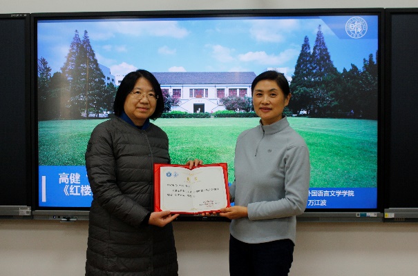 活动伊始,张艳丰教授代表学院对万江波教授的莅临表示热烈欢迎,并详细介绍了万江波教授在典籍翻译、辞典编纂等领域深厚的学术造诣与丰硕的研究成果,其后代表高健翻译研究中心为万江波教授颁发了研究员聘书,感谢她对高健翻译研究中心及学院翻译学科发展的支持。