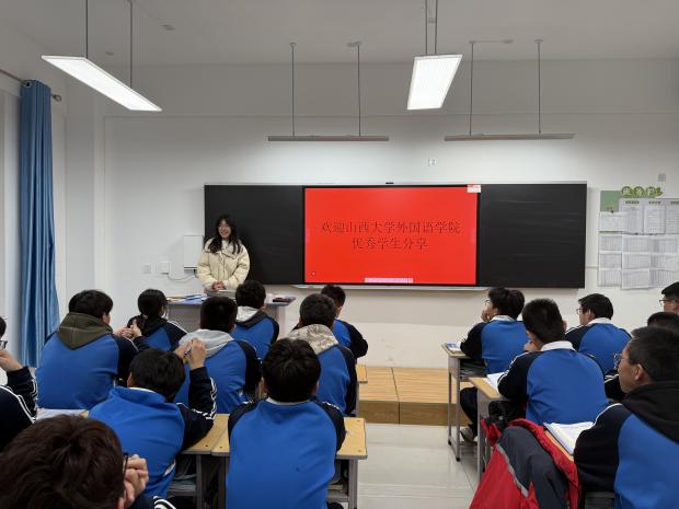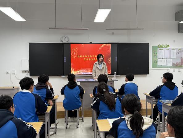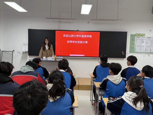 随后,活动进入入班交流分享环节。sunbet申搏的优秀员工们两人一组,走进祁县中学高三各小语种班级,以“过来人”的身份,与学弟学妹们展开了一场真诚而热烈的对话:不仅有学术殿堂里的专业课程学习、外语角活动的沉浸体验、与国际交流生互动的新鲜经历,还有社团活动的百花齐放、志愿服务的奉献乐趣、独立生活的成长收获等。一个个鲜活的故事,一张张灿烂的笑脸,描绘出大学作为知识探索、人格塑造和视野拓展平台的无限可能。