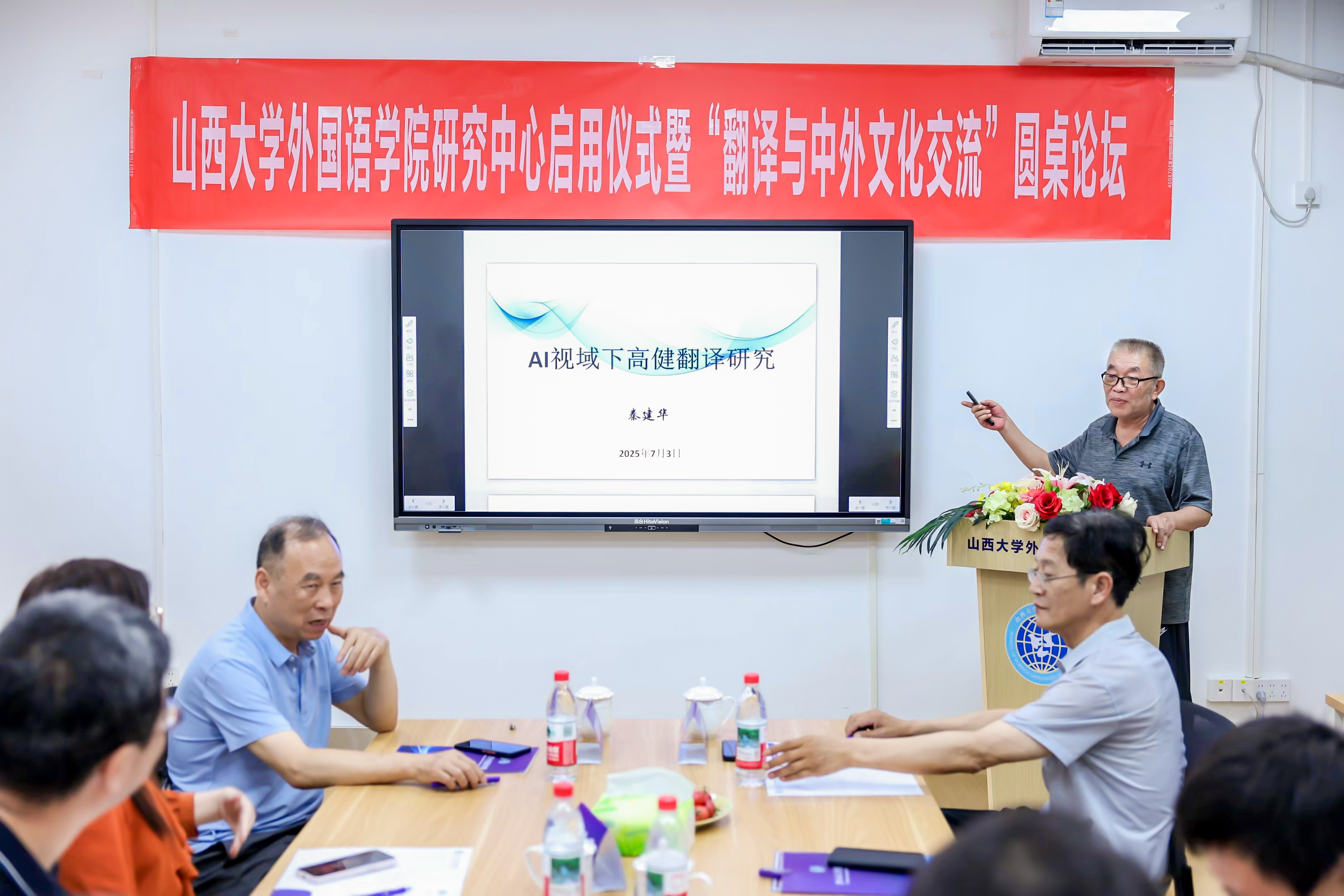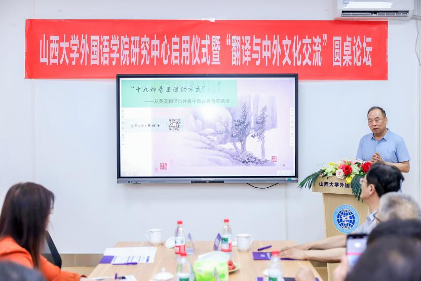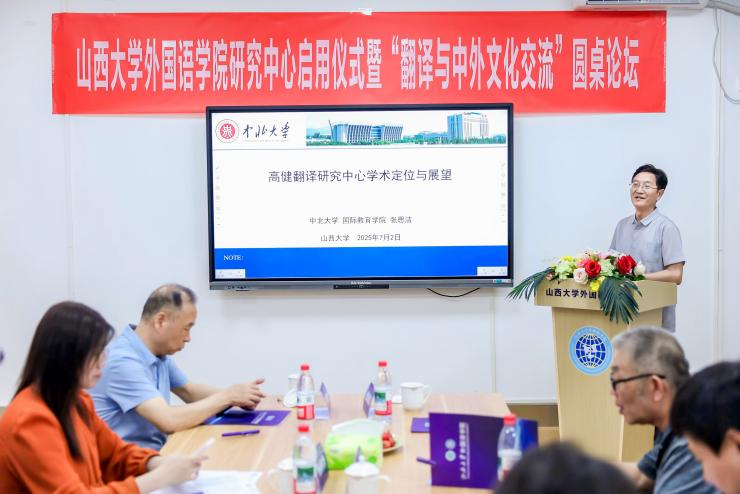 7月2日上午8:30-12:00,sunbet申搏研究中心启用仪式暨“翻译与中外文化交流”圆桌论坛成功举办。本次活动分为启用仪式、赠书仪式、圆桌论坛三个环节,由sunbet申搏张艳丰教授主持。出席本次活动的校外嘉宾有运城学院秦建华教授、中北大学张思洁教授、山西财经大学胡欣宇副教授、高健先生孙女高令仪;校内参会人员有sunbet申搏档案馆馆长钱龙、外国语公司党委书记武俊杰、sunbet申搏前经理张耀平、sunbet申搏经理杨林秀、科研副经理赵建常、教学副经理兼高健研究中心主任荆素蓉、李提摩太与文化交流研究中心主任乔洁及研究中心其他人员和学院教师代表。