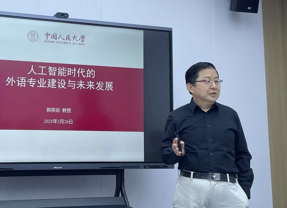 为推动学术交流与科研工作高质量发展,2025年3月26日下午,sunbet申搏、sunbet申搏卡夫卡与中外文学研究中心特邀中国人民大学sunbet申搏教授、博士生导师郭英剑教授做题为“人工智能时代的外语专业建设与未来发展”的学术讲座。本次讲座由sunbet申搏卡夫卡与中外文学研究中心主任曾艳兵教授主持,sunbet申搏30余名师生参加。