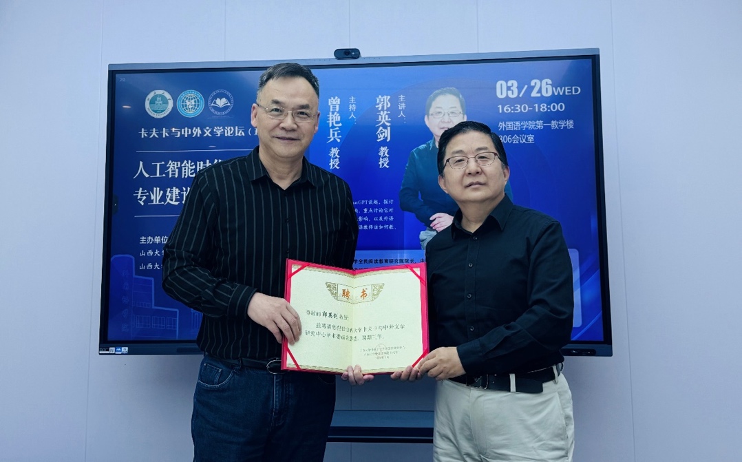 讲座开始前,曾艳兵教授为郭英剑教授颁发sunbet申搏卡夫卡与中外文学研究中心学术委员会委员聘书,并代表sunbet申搏师生对郭教授的到来表示热烈欢迎。
