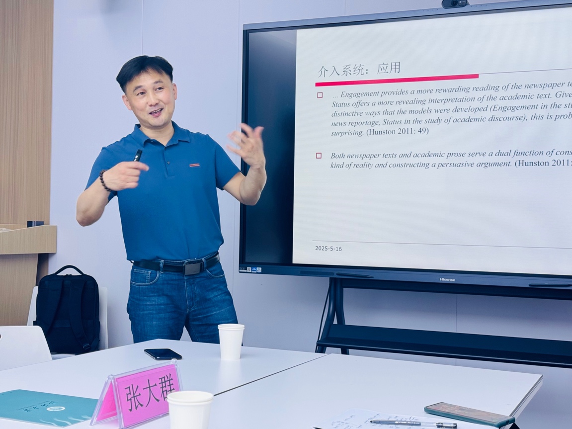 讲座中,张大群教授通过翔实的文献系统梳理了介入系统的形成背景与发展历程,并结合具体案例深入阐释了其在语篇分析中的应用价值。张教授以其激情洋溢的演讲风格、扎实的理论功底、跨学科的学术思维以及严谨的学术态度赢得了与会师生的高度赞誉。张教授所展示的介入系统的理论框架以及生动的例证分析,为在场师生提供了宝贵的研究思路。在互动环节,与会师生围绕讲座内容展开热烈讨论,并就学术研究及项目申报等问题与张教授进行了深入交流。大家纷纷表示,此次讲座不仅拓展了学术视野,也为今后的科研工作提供了新的方法论指导。