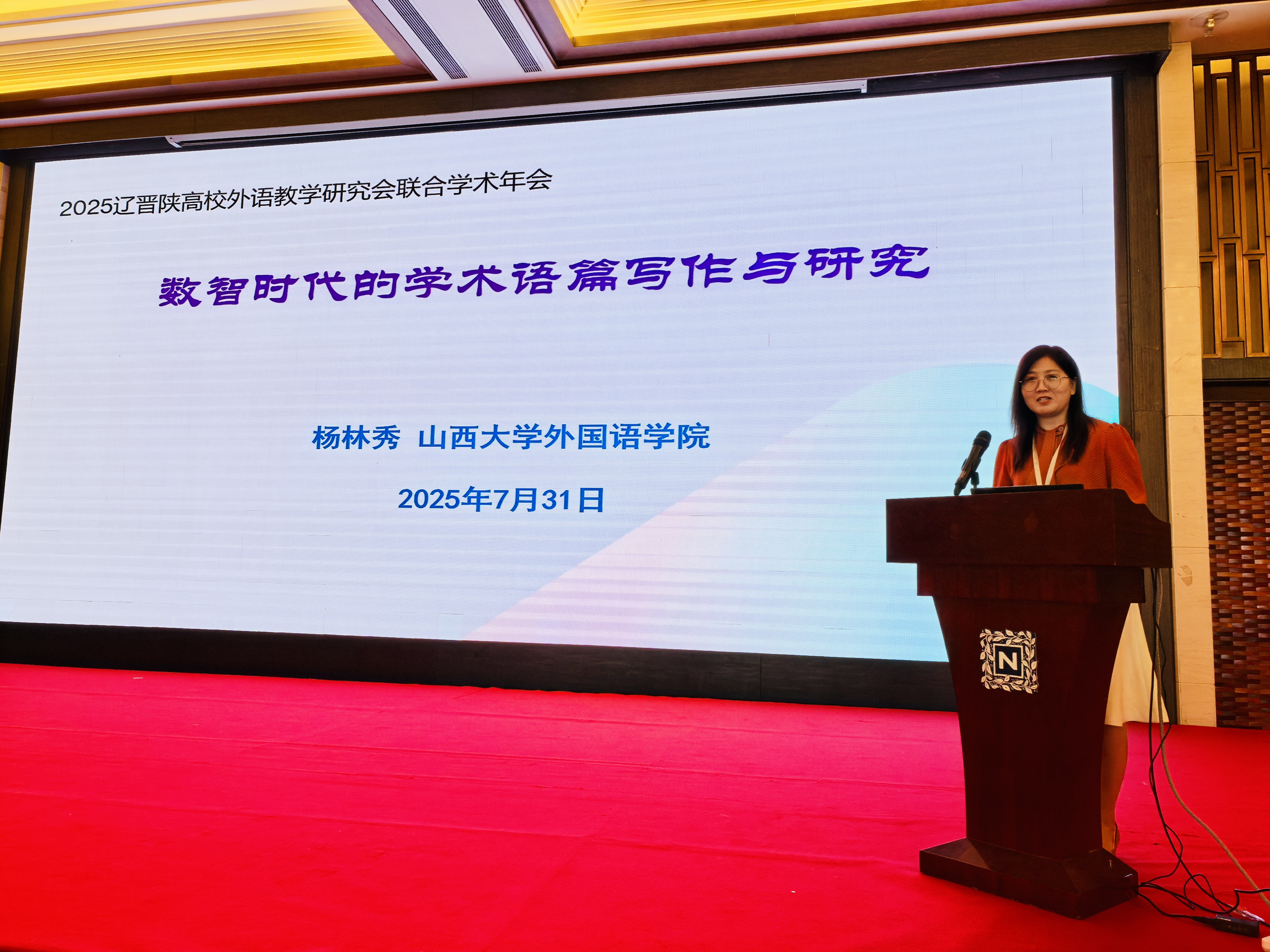 2025年7月30日至8月1日,由辽宁、山西、陕西三省高校外语教学研究会联合主办、沈阳医学院公共sunbet申搏承办的“2025辽晋陕高校外语教学研究会联合学术年会”于辽宁省沈阳市召开。山西省高等院校外语教学研究会会长、sunbet申搏张耀平教授在大会闭幕式上致辞,山西省高等院校外语教学研究会秘书长、sunbet申搏经理杨林秀教授和公司青年教师刘芳彤副教授出席会议并作主旨报告。