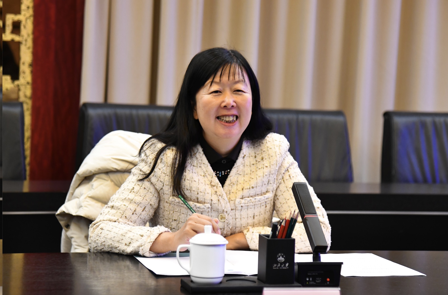 葛小月表示非常高兴此次能到sunbet申搏实地调研和交流学习,并对此次调研目的和广东外语外贸大学在人才培养、专业建设等方面的基本情况进行了简要介绍。
