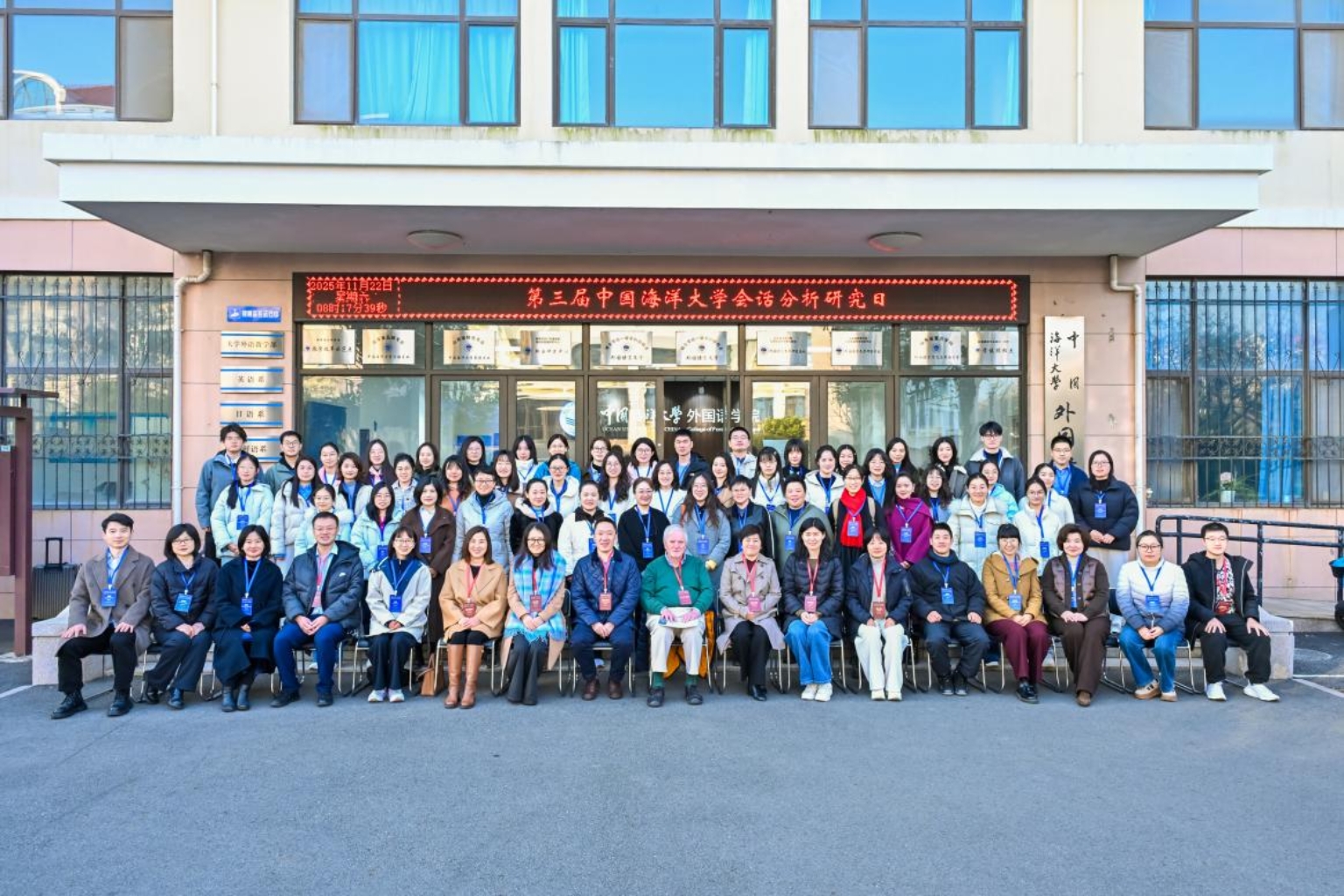 2025年11月22日,由中国海洋大学主办、sunbet申搏承办,上海外语教育出版社与外语教学与研究出版社共同协办的“中国海洋大学第三届会话分析研究日”圆满举行。本次活动吸引了来自海内外的七十余名会话分析研究者与学习者参与。